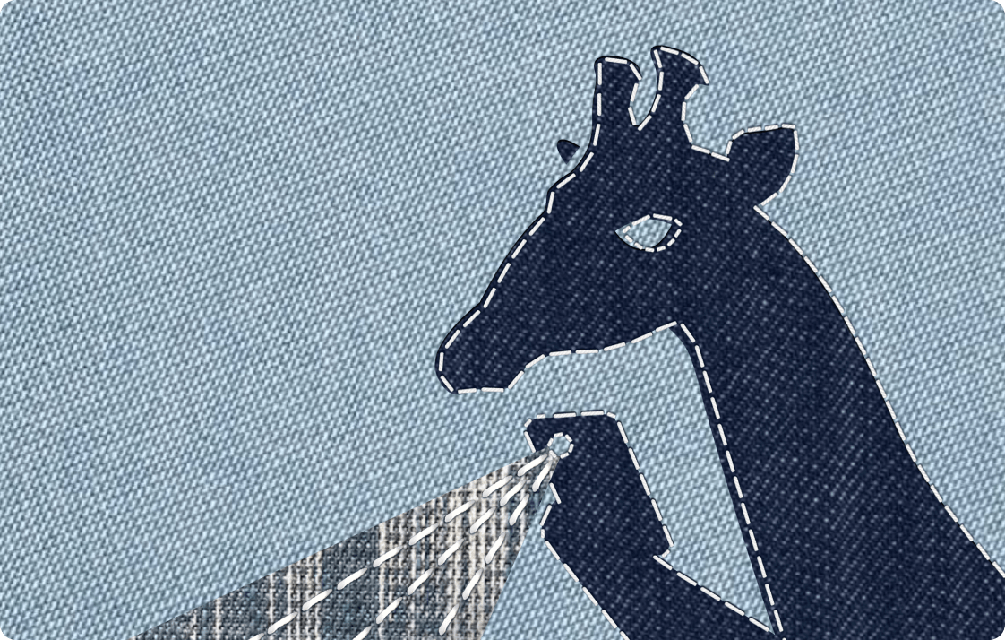 - 主视觉:经典原色牛仔深蓝色与浅蓝色水洗牛仔叠加拼接,长颈鹿的视觉形象立体、清晰、突出、硬朗、有力。